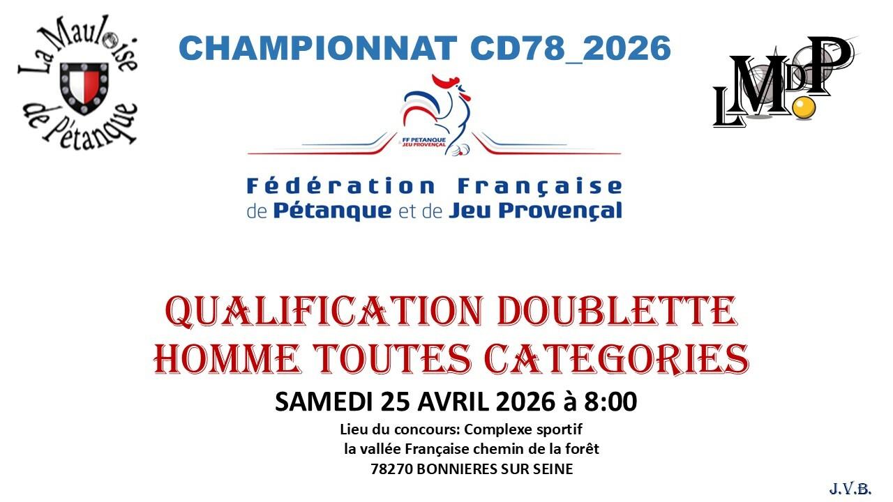 - Qualification doublette homme toutes catégories à BONNIERES SUR SEINE.